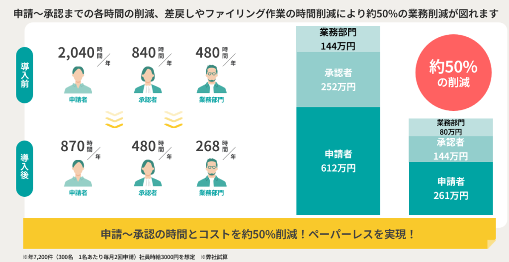 紙や印刷物の削減、郵送費のカットなど、デジタル化によるコスト削減効果が期待できます。さらに、業務の効率化により、人件費の削減にもつながります。これらのコスト削減効果により、企業の経営がより安定します。具体的には、紙の購入費用や印刷コストが不要になり、郵送にかかる時間と費用も削減されます。また、業務プロセスの自動化により、担当者の負担が軽減されるため、他の重要な業務にリソースを割り当てることが可能になります。これにより、全体的な運営コストが削減され、企業の財務状況が改善されます。