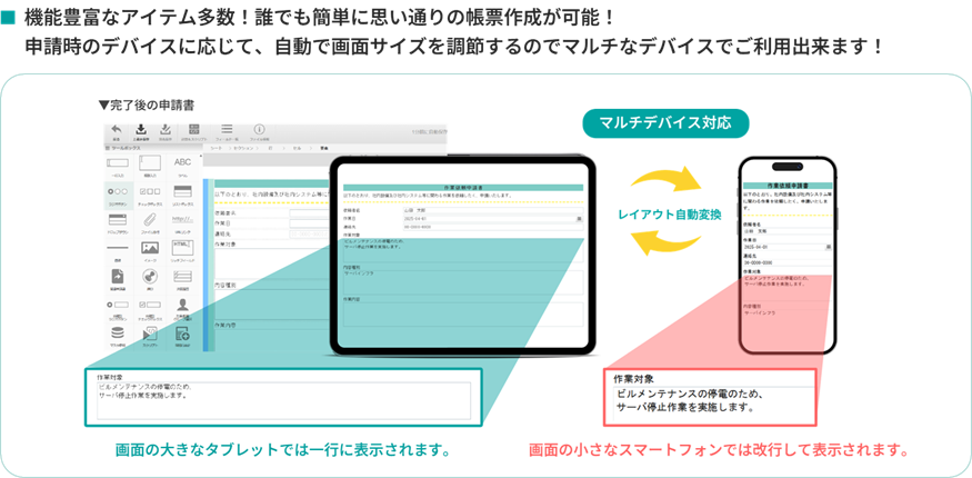 既存のExcelデータを活用して、申請や承認フローを構築できるタイプです。初めてワークフローをデジタル化する企業に最適です。